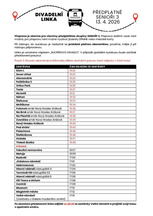 v pondělí 13. dubna vyjede pro abonentní skupinu Senioři 3 bezplatná autobusová linka. Jízdní řád naleznete v obrázku níže.